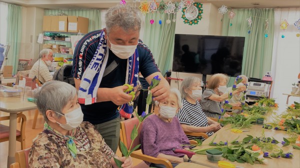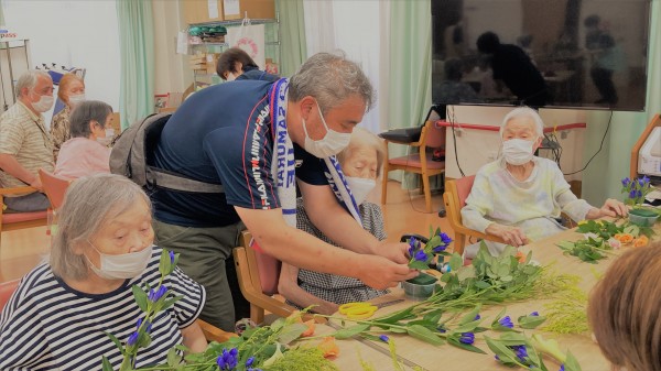 男性の先生が今回もしっかりと皆様に教えつつ、お花を作っていきます♪