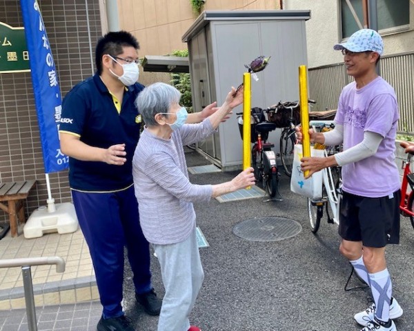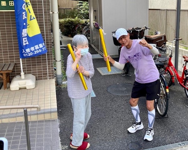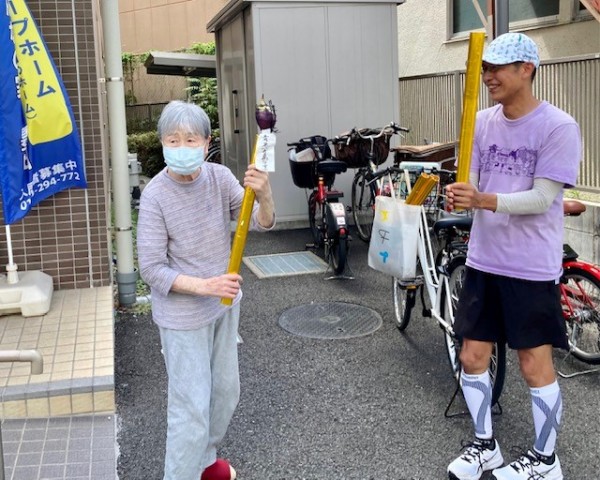 グループホームみんなの家・墨田へ、第二回「寺島なす祭り」のイベントで「青果リレー」の走者がやってきました!!