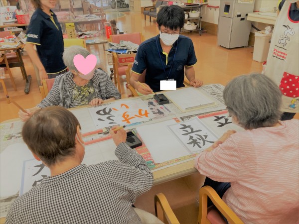 今回の書道ですが、時折笑いあいながら話題が弾みつつ行う事が出来ました。集中して書いていても途中で疲れちゃいますから、時折話題を挟んでやるのも、またいいことですね!(^^)!