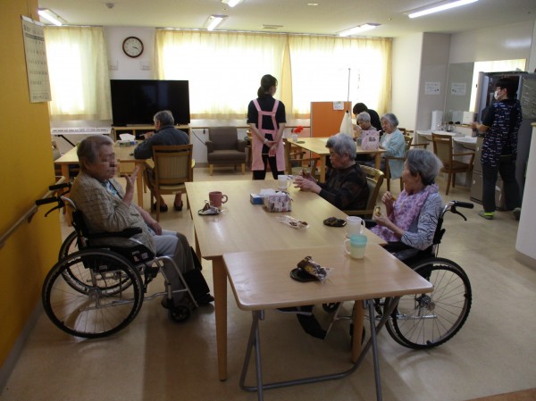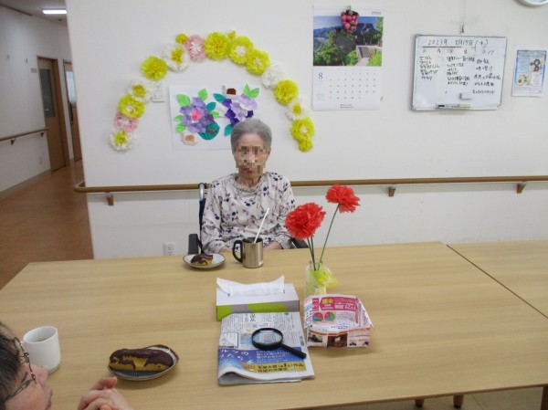 皆さんでハッピーバースデーの合唱をしてお祝いし、おやつはちょっとリッチにエクレアです。