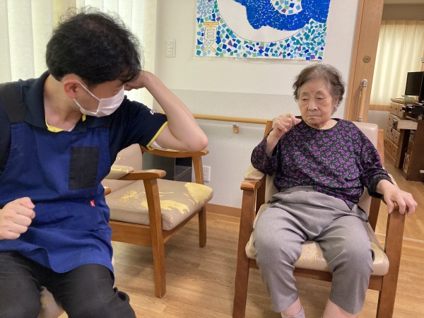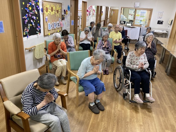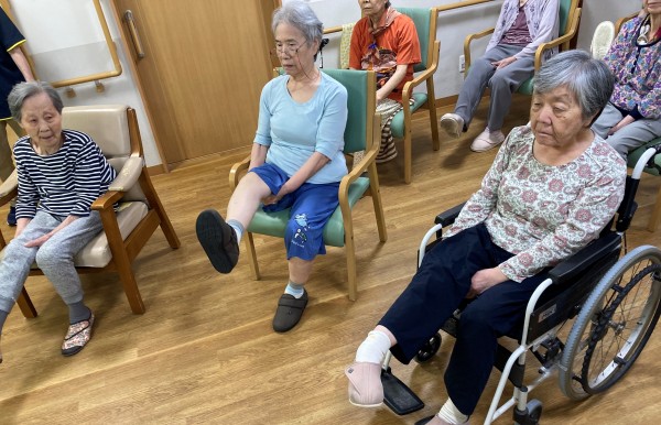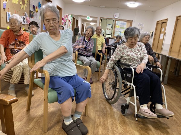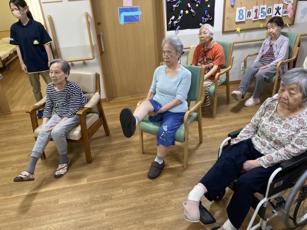 暑い日が続き体調は崩されていませんか?当ホームでは皆さん元気にリモートで体操を行ないました。
