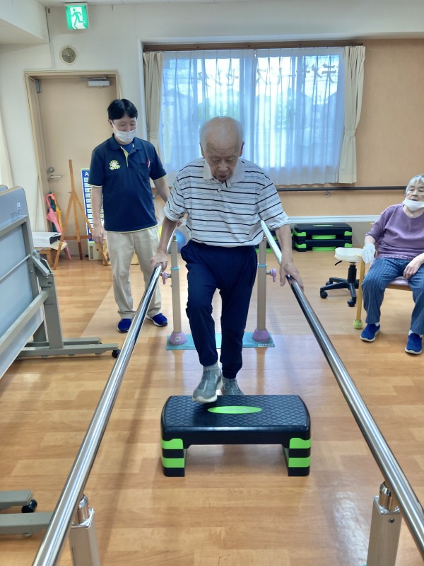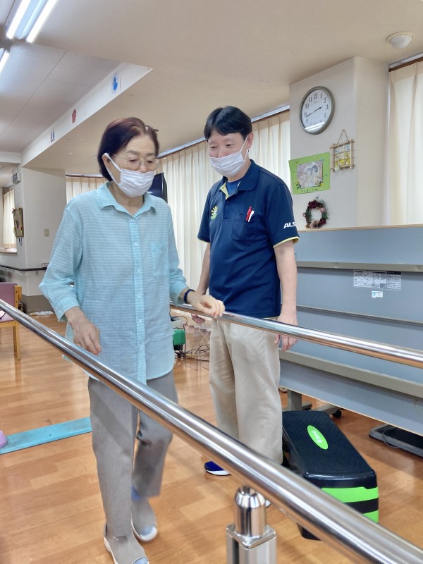 皆さん、しっかりした足取りで平行棒を使って歩かれていました。
