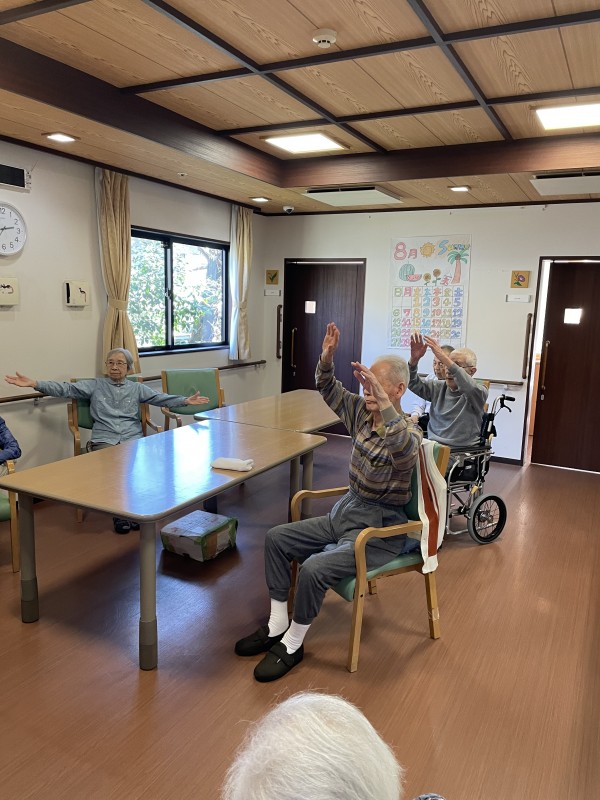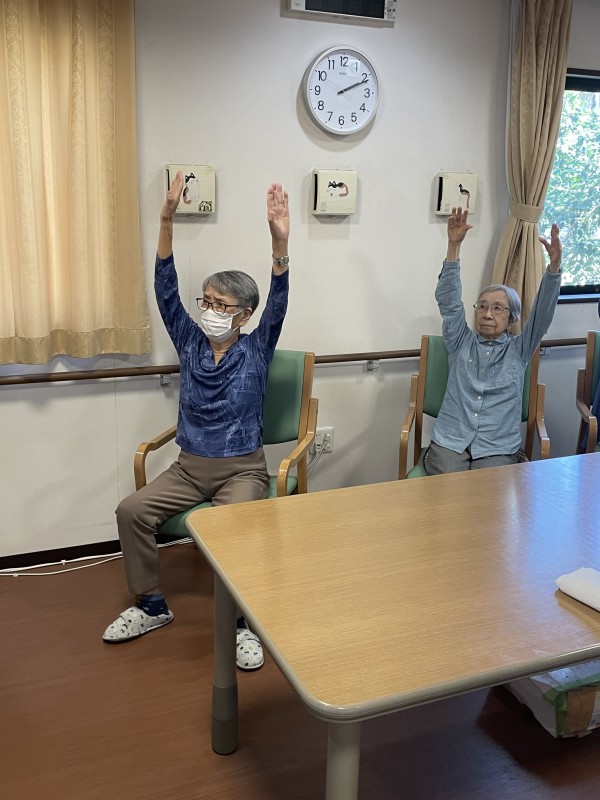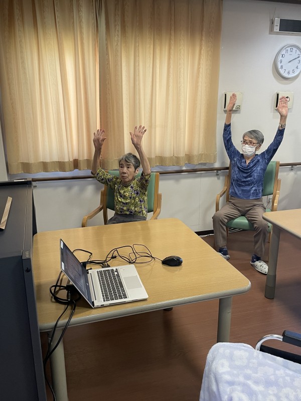 まさに夏祭りと言った雰囲気で、入居者様も張り切って体操に参加されています。