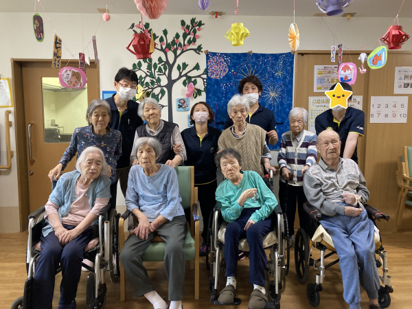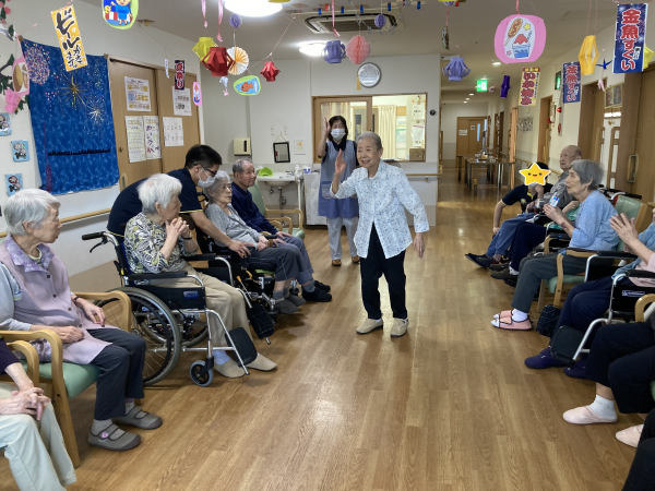 入居者様で歌が上手な方がいらっしゃるので、真ん中に立ち皆さんを誘導しながら歌を歌って下さります♪