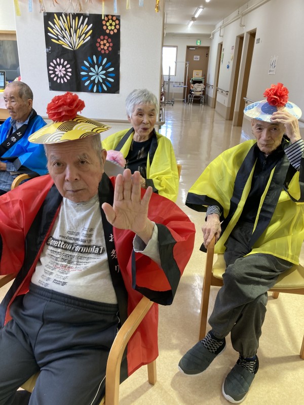 この日の為に、我がホーム長がカラフルな花笠を沢山作ってくれました♡