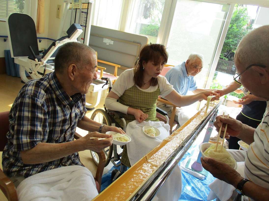 夏といえば流しそうめん!皆さん気合いを入れて参加されました♪