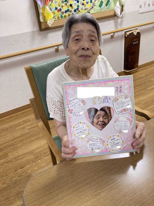 8月お誕生日の方がいらっしゃったので皆様とお祝いいたしました。スタッフコメントを記入した色紙を