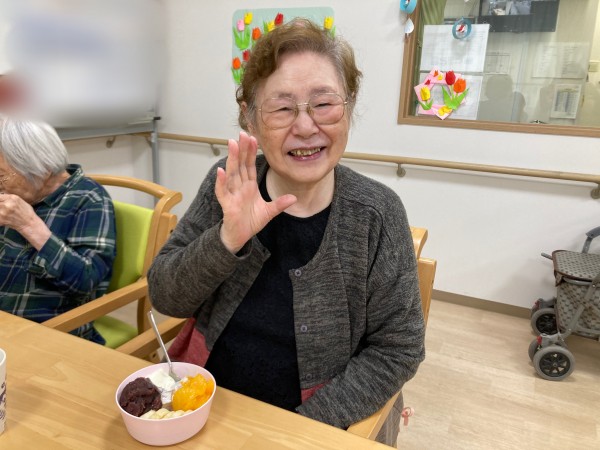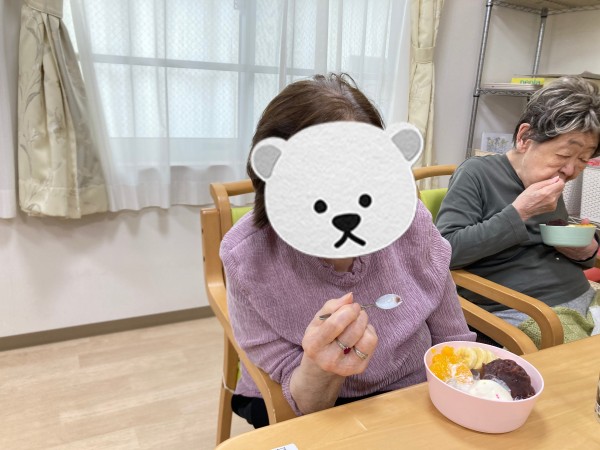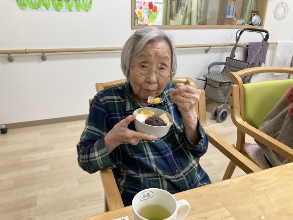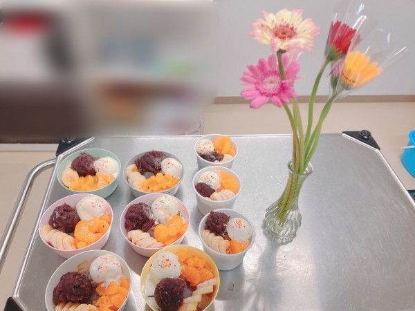 職員手作りのクリームあんみつでお祝いさせて頂きました。