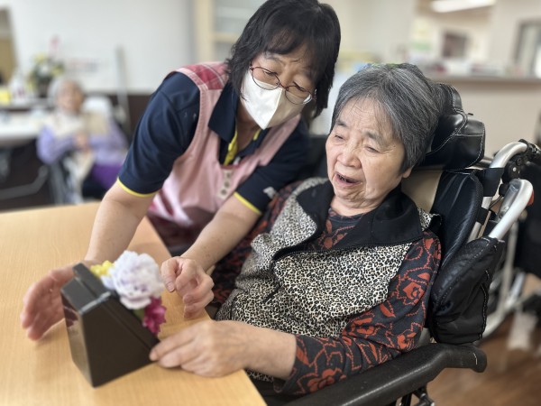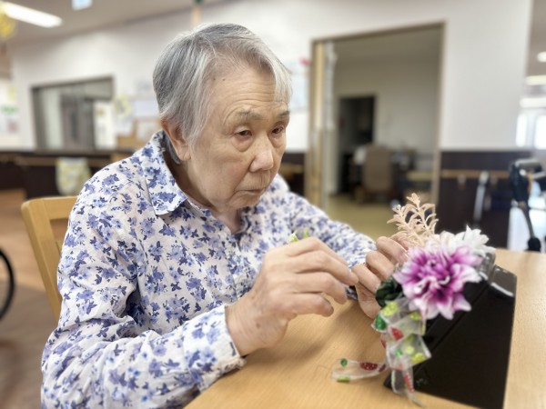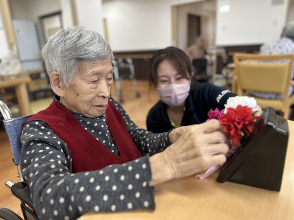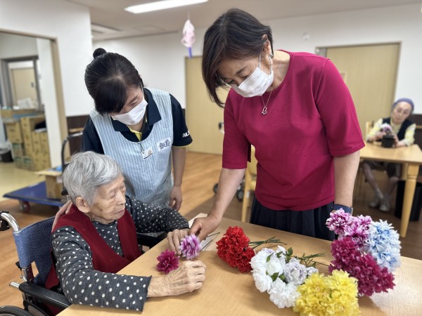 細かい作業もありますが、若いころにお花を習っていた方が多い世代ですし、色味がとっても綺麗なので、良い刺激にもなりました。