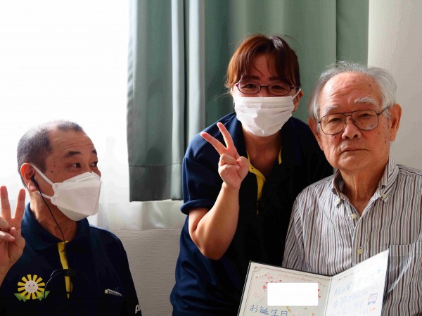 職員がお部屋にお伺いして…お祝いしました(;´・ω・)