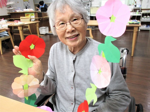 可愛い吊るし飾りがまた一つ増え、皆さんの笑顔と一緒に明るい食堂になりました。