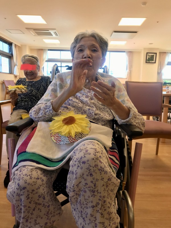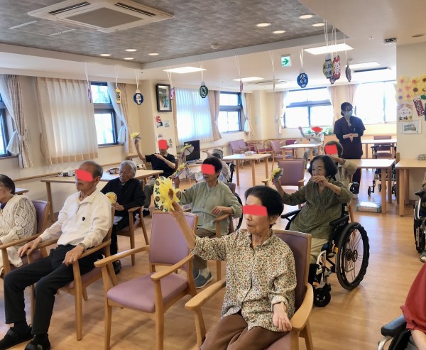 職員手作りの花笠片手に楽しく体操したのでその様子をご紹介します♪