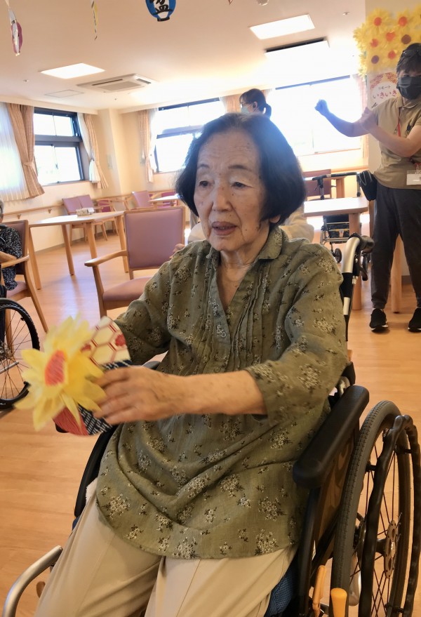 当日まで、花笠音頭を食堂で流してご利用者様と予習したり、