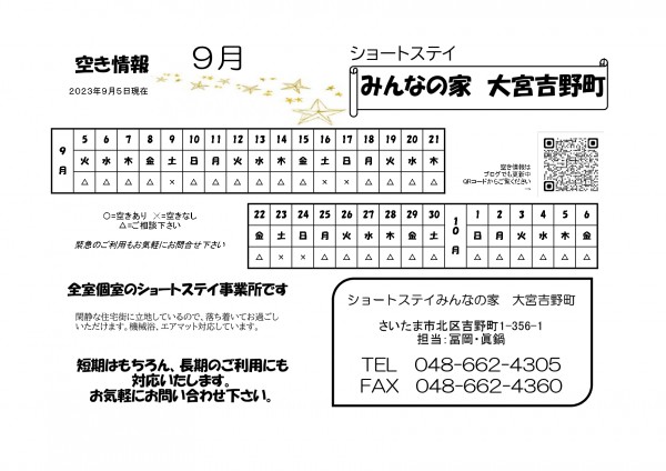 ご挨拶と空き情報の更新です