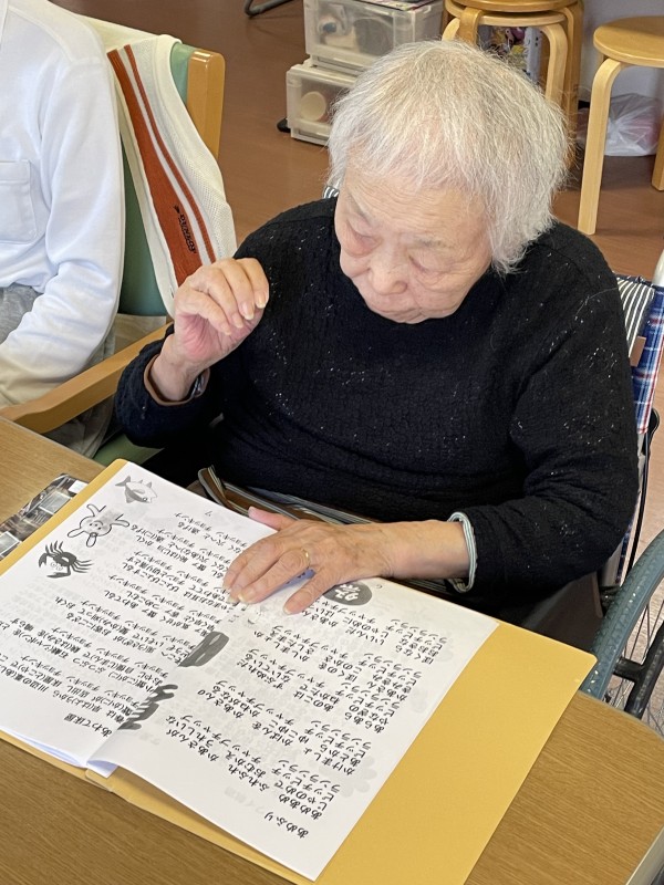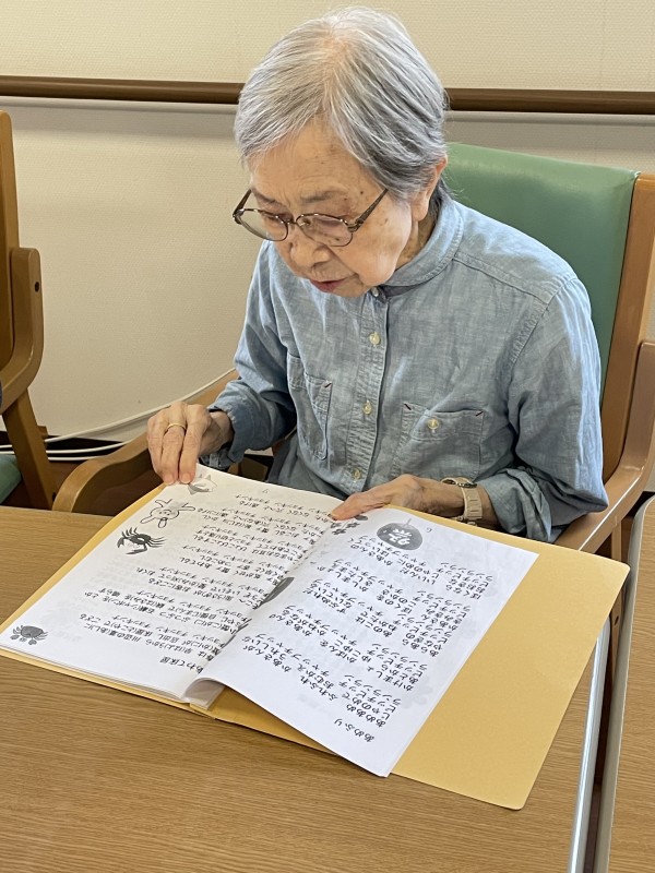 歌を歌うのがお好きな入居者様が多いので、よくスタッフ手作りの歌集をお渡しして皆で歌を歌うことがあります。