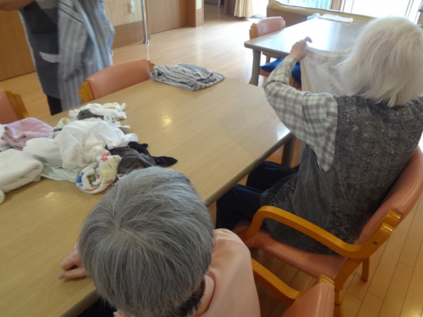 運動後は皆さんに洗濯物をたたんでいただきました(^^♪ 家事は得意ですね(^^)/