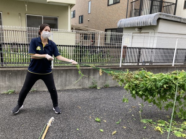ゴーヤを撤去です!(ちなみに今年は17個ほどのゴーヤができました。)