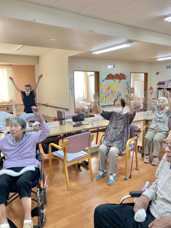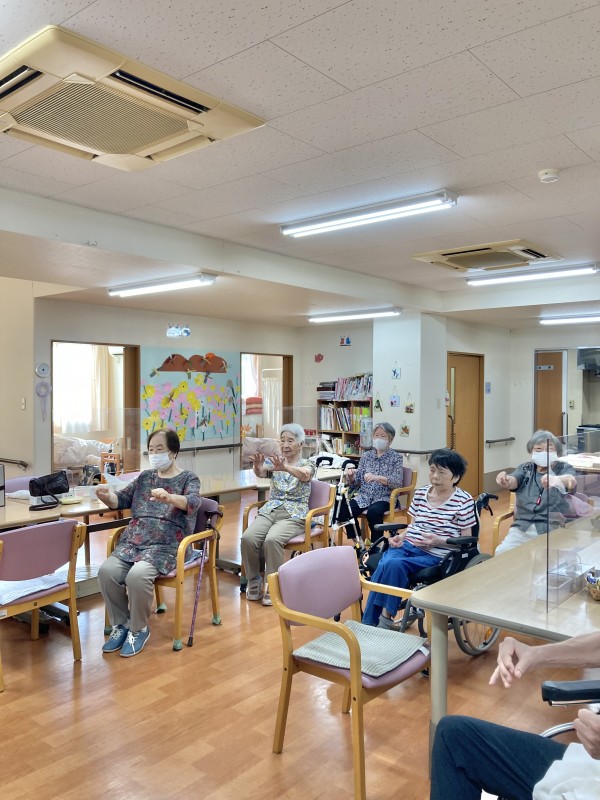 10分程度、体を動かした後に体操しています。皆で、歌を歌ってからおやつとなりました。