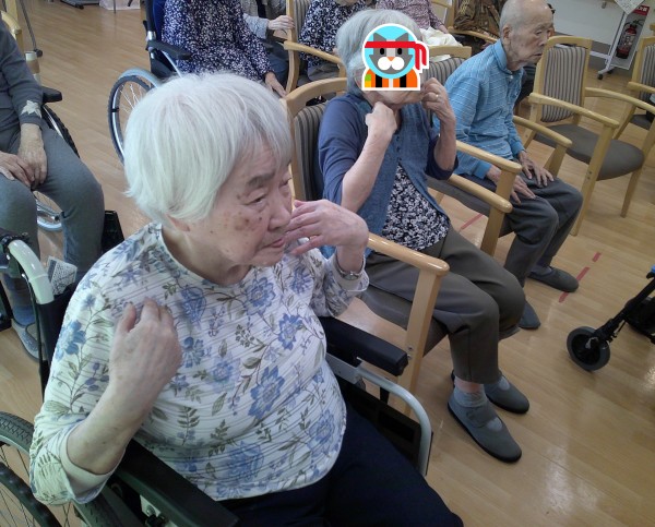 先日、リモートの体操があり、今回は1階の食堂に集まってもらい、10名の方が参加されました。