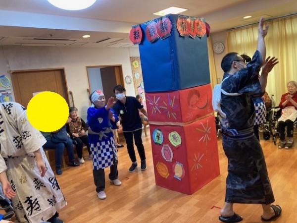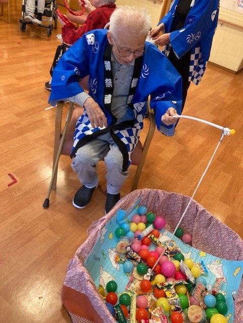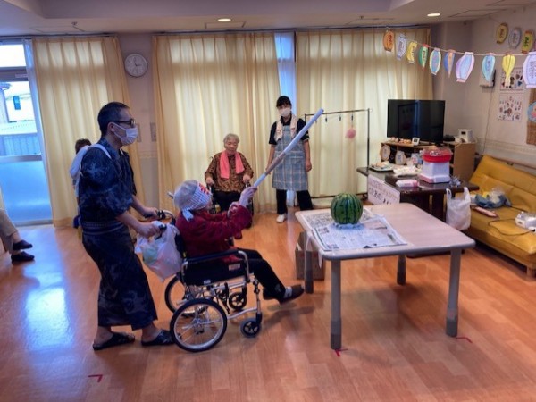 おやつ釣り、輪投げ、スイカ割り、盆踊りを開催致しました♪