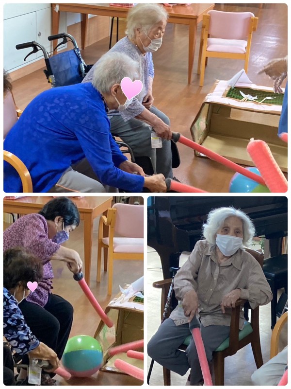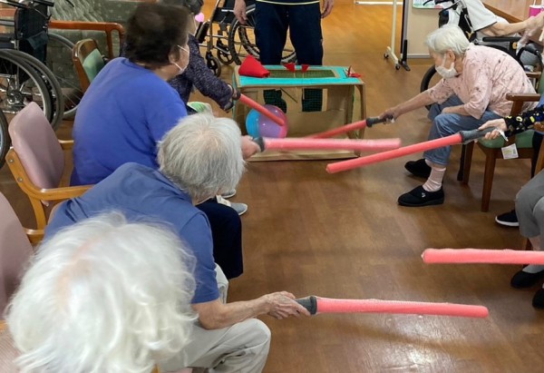 敬老の日に、ご利用者様と棒サッカーでenjoy!