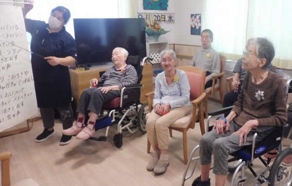 職員による歌のプレゼントと、皆さんで鈴を使用しての合唱、