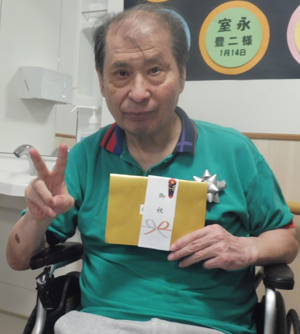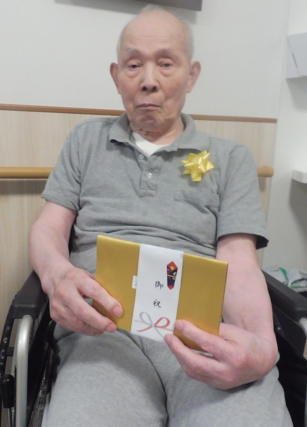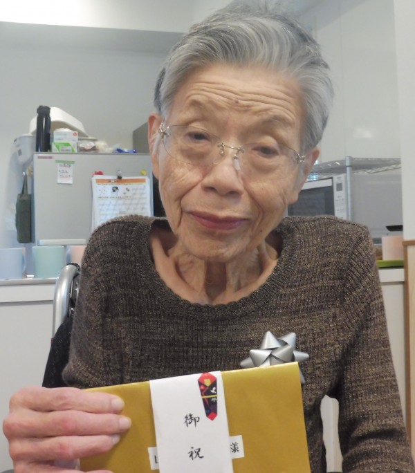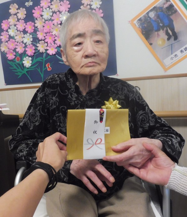 そして最後に職員による長寿の祝いの所以や由来の話のあとに、お一人お一人に