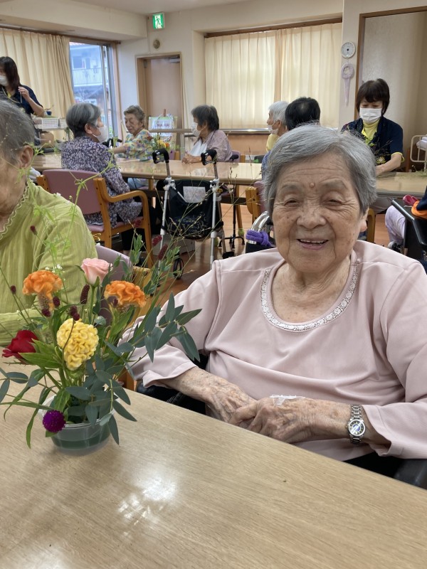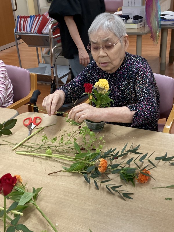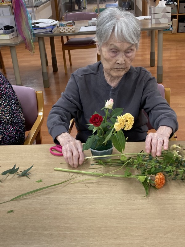 今月もデイサービスで行われたフラワーアレンジメント教室に参加させていただきました。