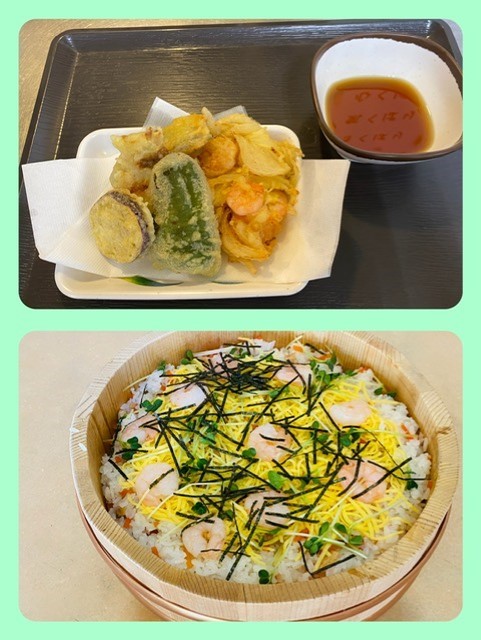 職員が腕によりをかけて、天ぷらとちらし寿司を作りました!