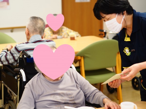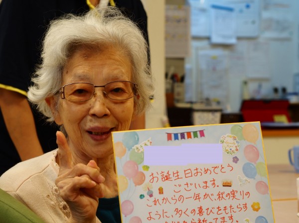 職員手製のお誕生日カードをお渡ししてお祝いしました。