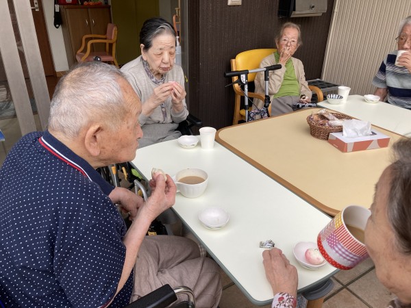 職員も一緒になっておやつを食べ