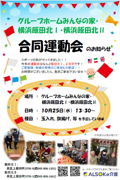 みんなの家・横浜飯田北Ⅰ、Ⅱ合同運動会のご案内です\(^o^)/
