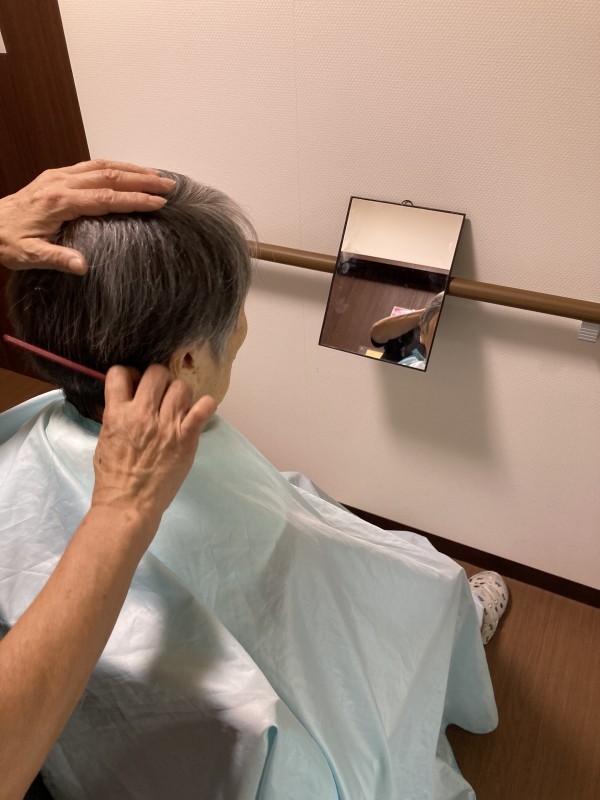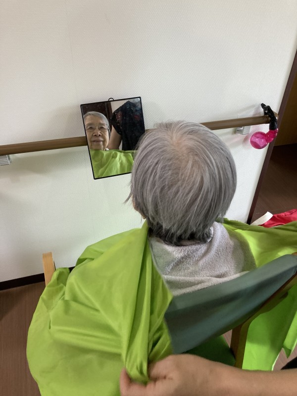 入居者様は毎回の理美容を楽しみにされていますが、今回も大喜びしていました