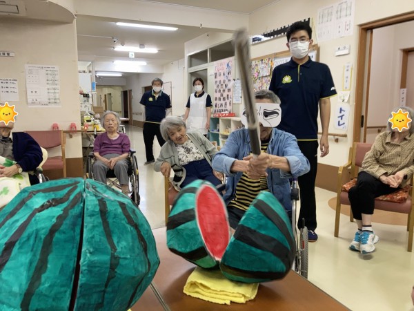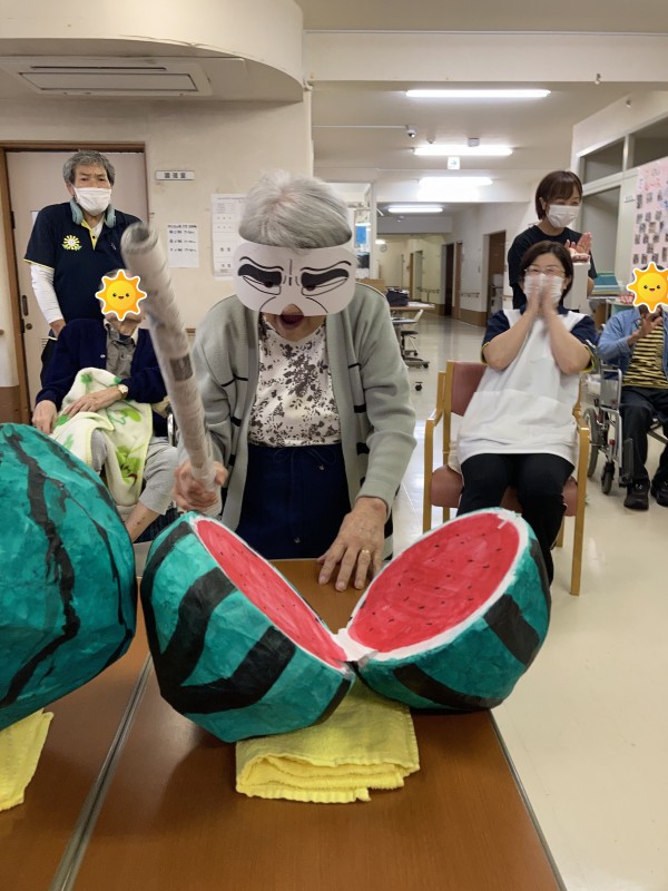 すいか割りの様子をお伝えいたします(-ω-)/