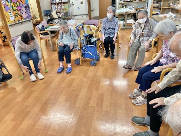 10分くらい体を動かしてから、今月の歌「里の秋」、「旅愁」を歌って、おやつとなりました。
