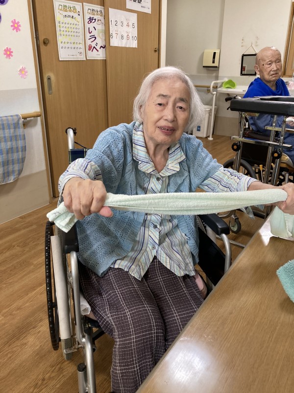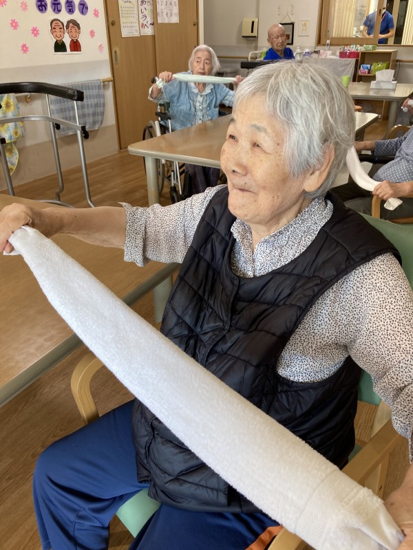 秋と言えば、スポーツの秋と言う事で、タオルを使ってちょっとした運動をしています。