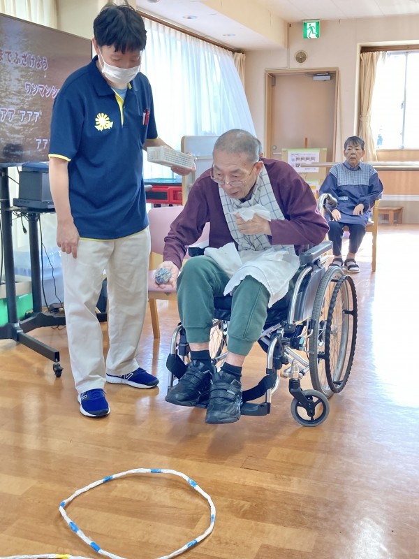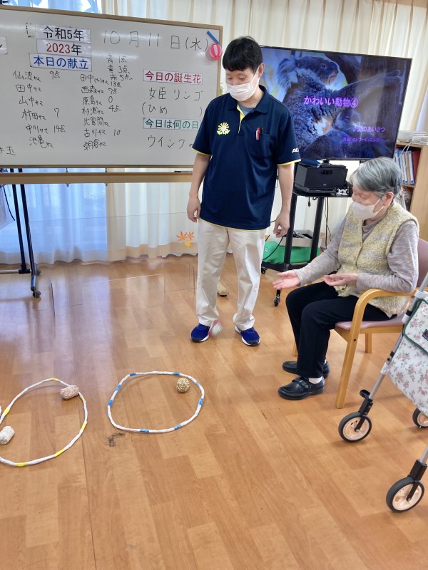 この後、音楽レク「紅葉」を皆で体を動かしてから歌を歌って、おやつとなりました。