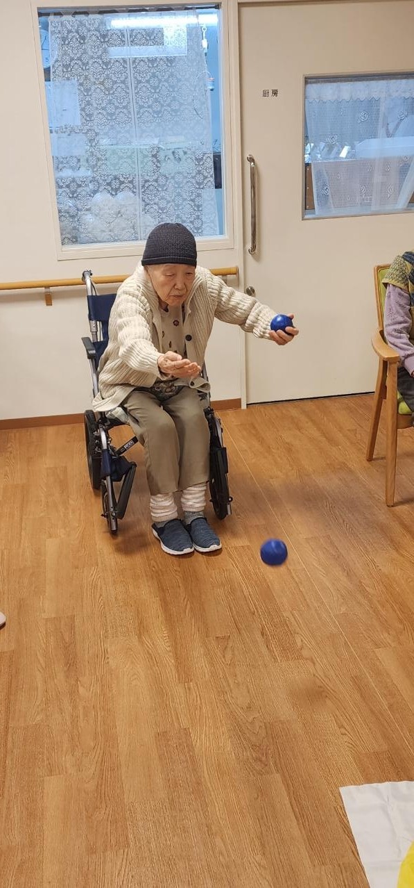 赤チームと青チームに分かれて、真ん中を狙って交互に投げていきます。