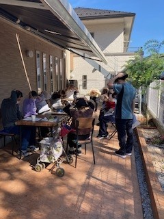 2023.10.13㈮13:00~14:00、パンとピザのお店HoHoEMiのテラスでスマイルカフェを開催しました。