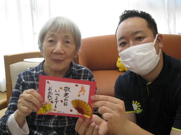お饅頭を召し上がった後は、職員からメッセージカードもプレゼントです(#^^#)!!