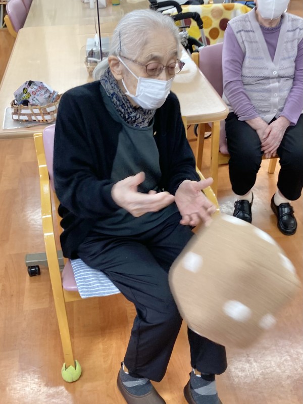 この後、「紅葉」を音楽に合わせて体を動かしてからおやつとなります。