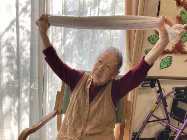 タオルを使った体操を行いましたが、真剣な表情で参加されていますよね。