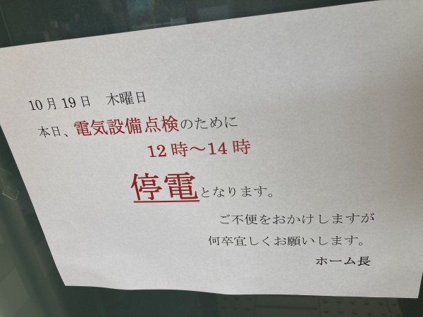 12時から14時まで全館停電となりました。