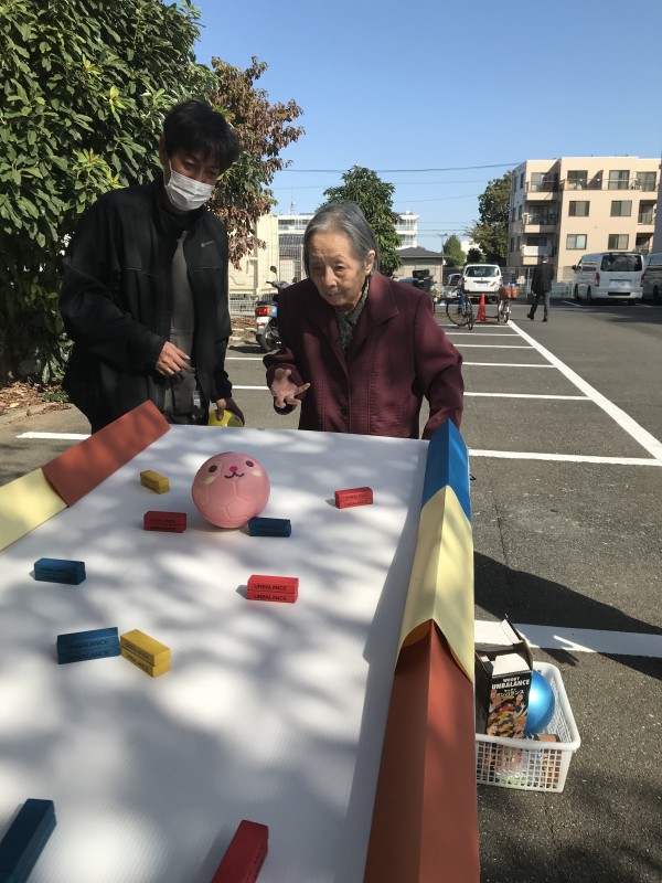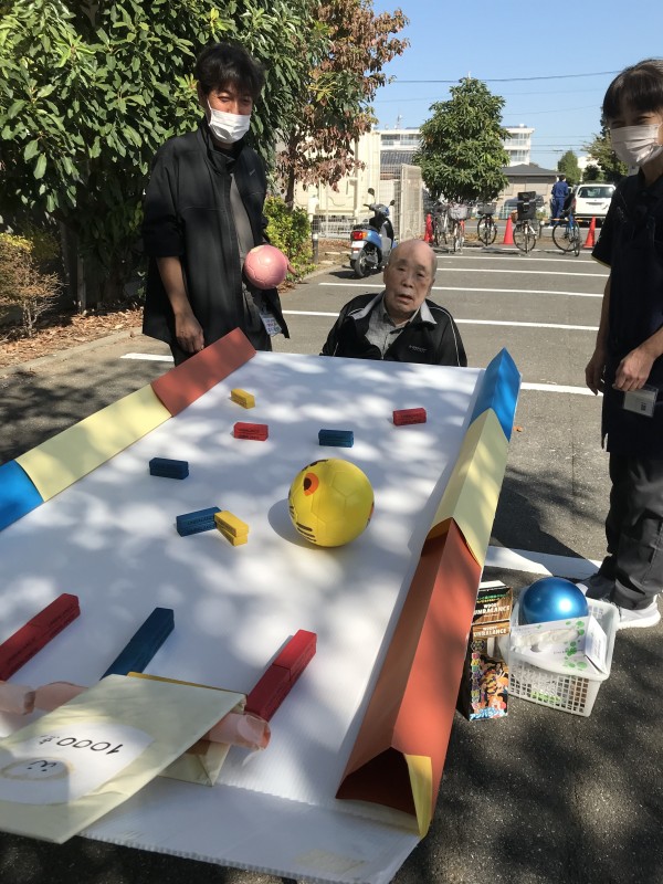 先日施設の外で青空の下で行いましたすこや家・秋祭りの様子を
