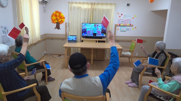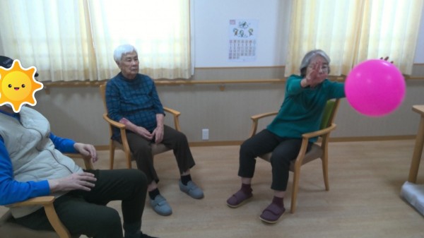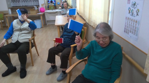 風船バレーに玉入れ、旗揚げと座っていてもできる競技で皆様たくさん体を動かしてくださいました!