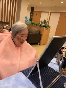 美容師さんと相談しながら、今日はどんなふうにしますか?とのお尋ねに楽しそうに受け答えされていました。