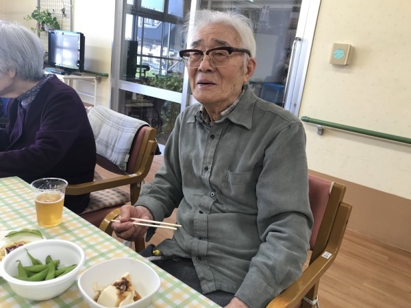 音楽を流しながらノンアルコールビールでおつまみを召し上がられ、大変楽しそうに過しておられました。