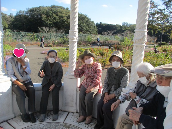 「天高く馬肥ゆる秋」という言葉にぴったりのお天気の中、バラ園に行ってきました。