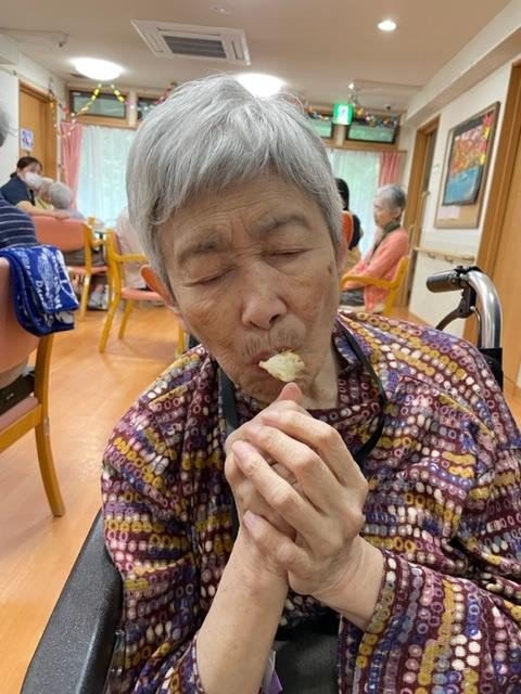 おやつは先ほどパン食い競争でゲットした