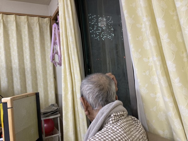 大きな音の際はびっくりされていましたが一度花火が上がると「おおー」や「綺麗だね」などとても楽しまれていました。